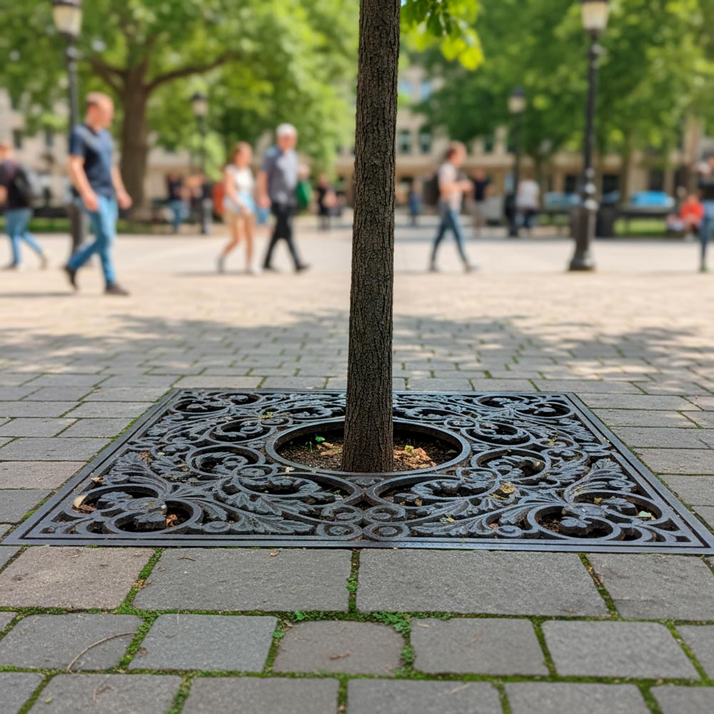Идеальное решение для городского озеленения! Квадратная чугунная решетка надежно защищает приствольную зону, обеспечивая доступ воздуха, воды и света к корням. Прочный чугун СЧ 20 гарантирует устойчивость к транспортным нагрузкам и долгий срок службы. Сохраняет эстетичный вид территории и жизнеспособность деревьев.