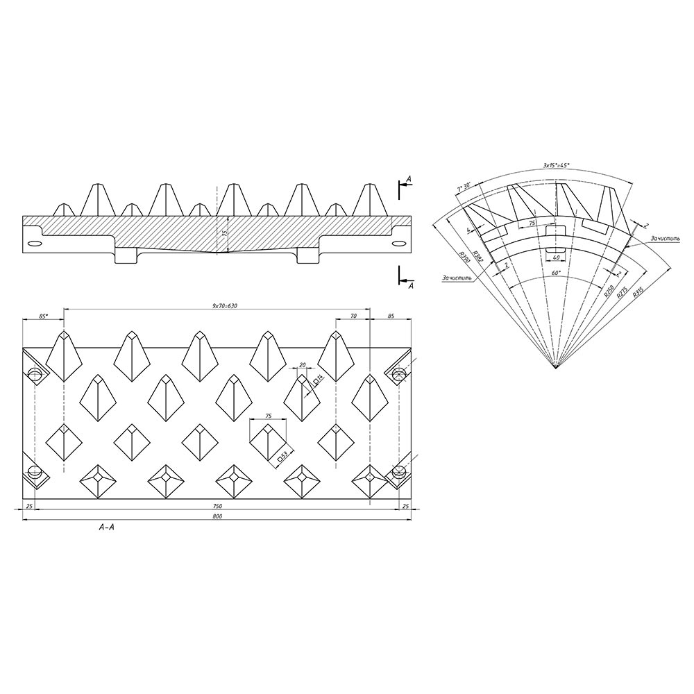 | МатериалСт. 70ХЛ (аналог Ст. 110Г13Л) | ПрименяемостьДДЗ-6 | Длина800 мм |