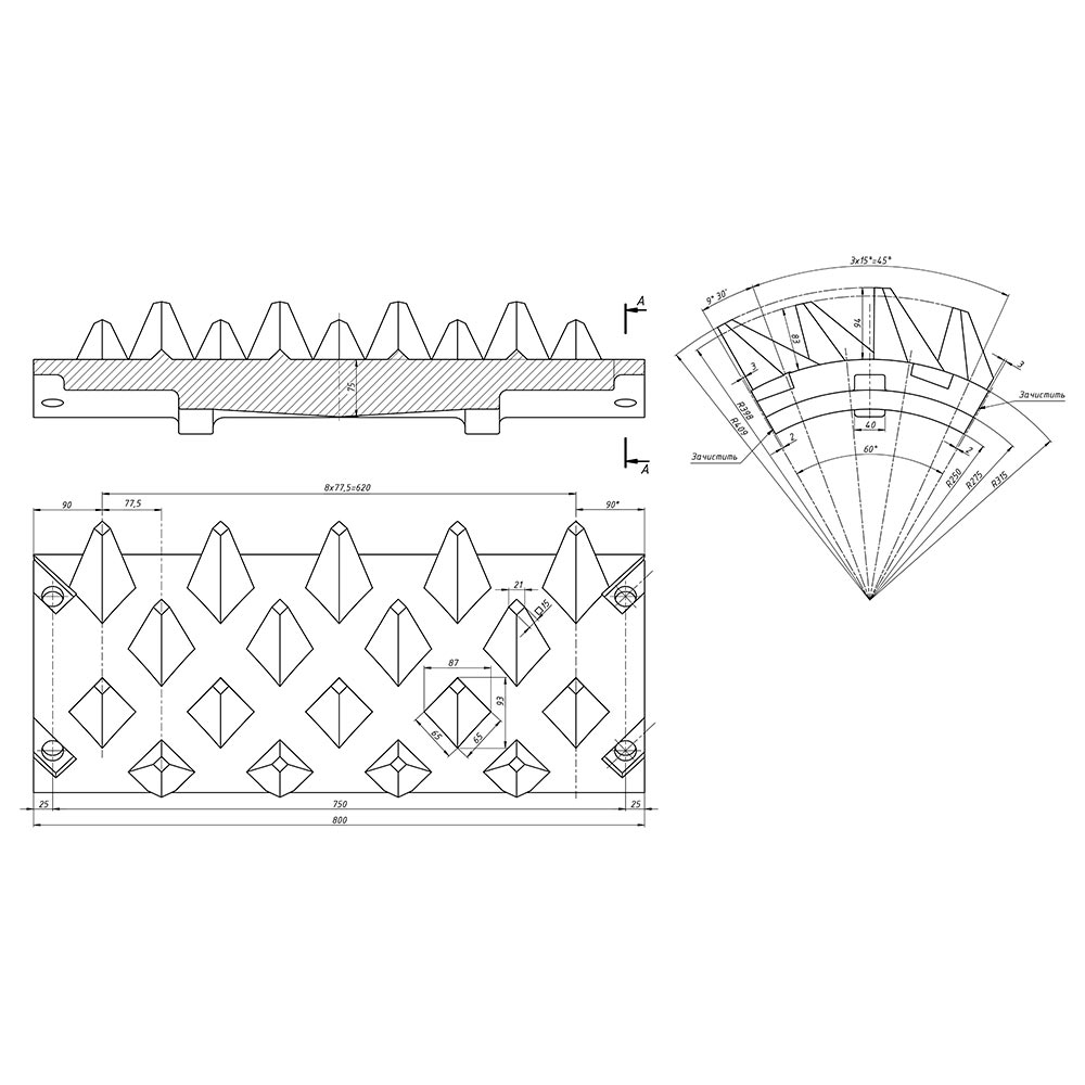 | МатериалСт. 70ХЛ (аналог Ст. 110Г13Л) | ПрименяемостьДДЗ-6 | Длина800 мм |