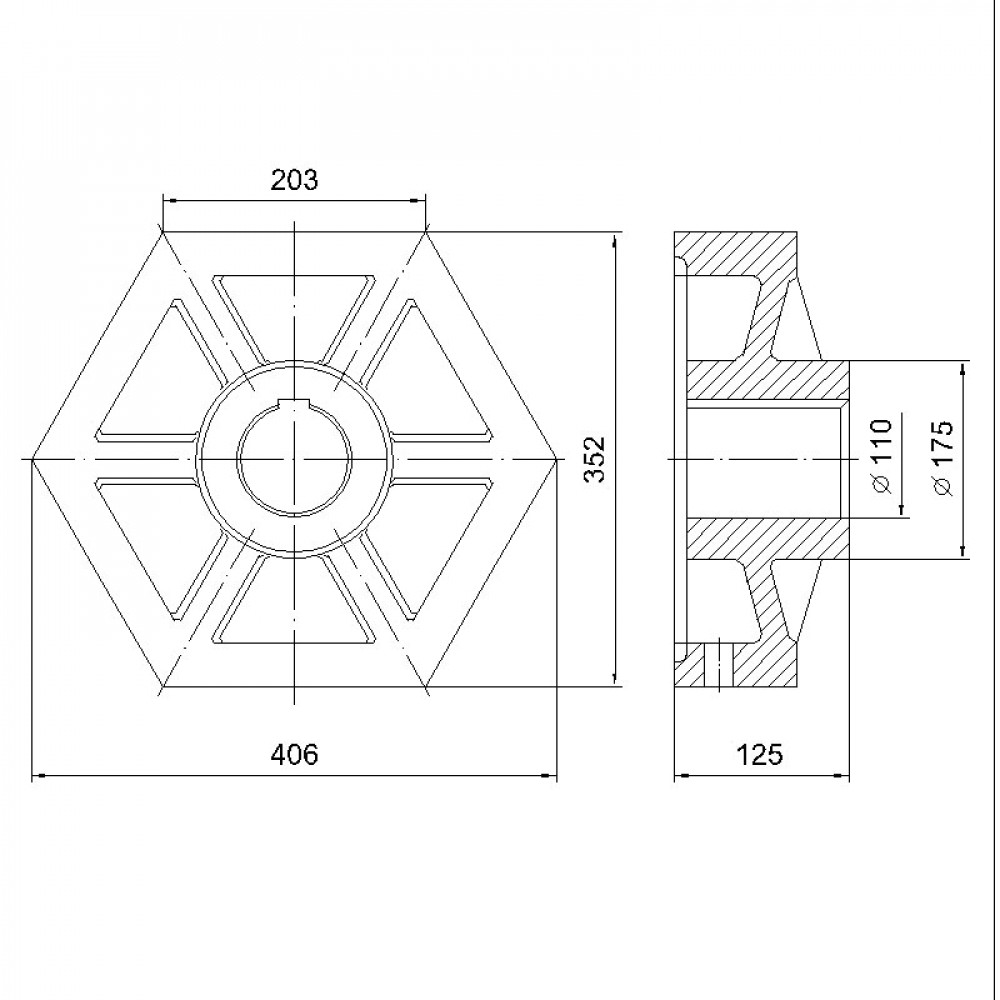 Ступица ДО-1М-297.01.02.001А с посадочным диаметром 110 мм устанавливается в дробилку ДО-1М в количестве двух штук. К ступице крепятся дробящие сегменты А и Б.